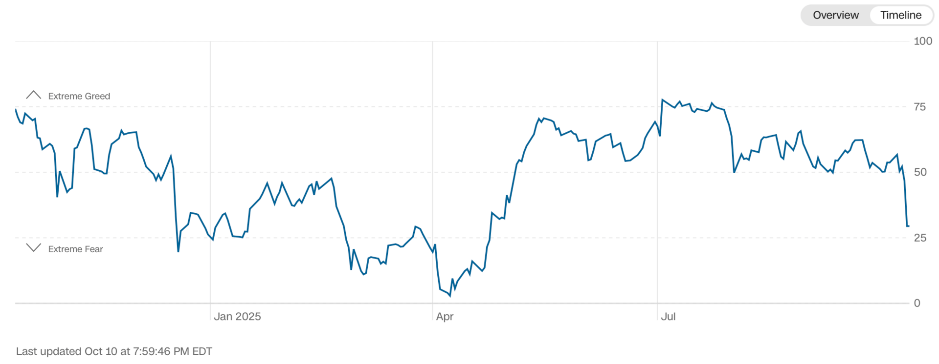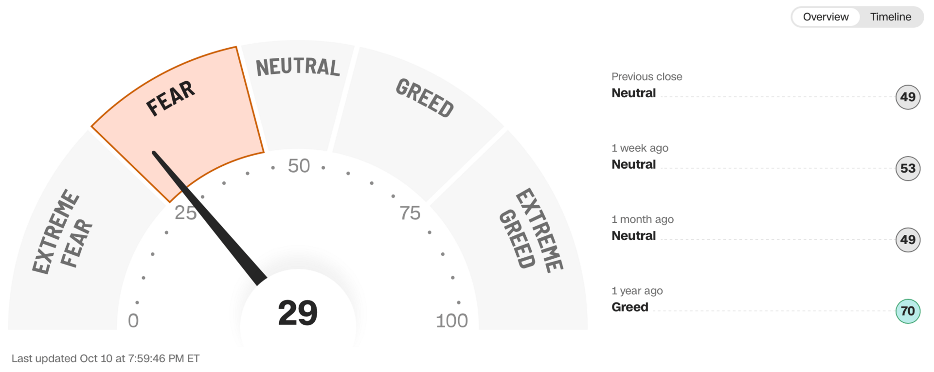 Current read is 29 on the fear greed index vs 53 last week.