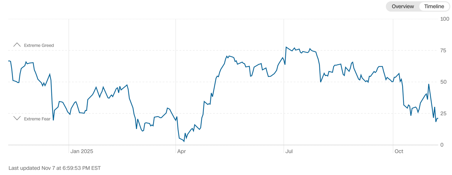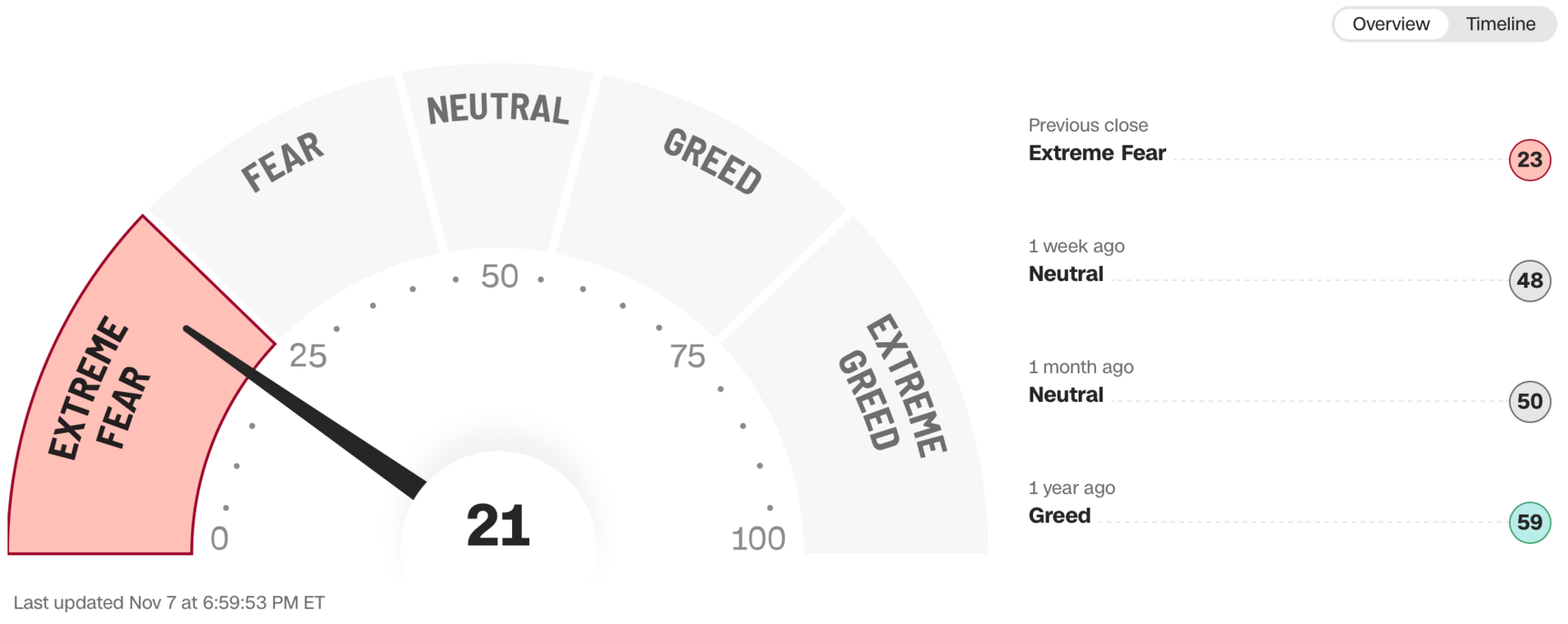 Current Fear/Greed Index (I disagree with this number, I put it at 60, not 21)