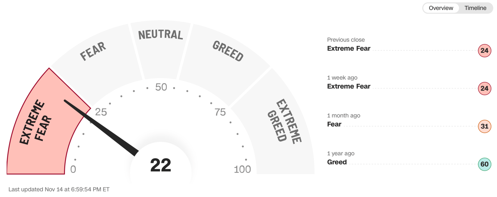 Current Fear/Greed Index (I disagree with this number, I put it at 60, not 21)