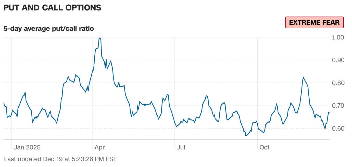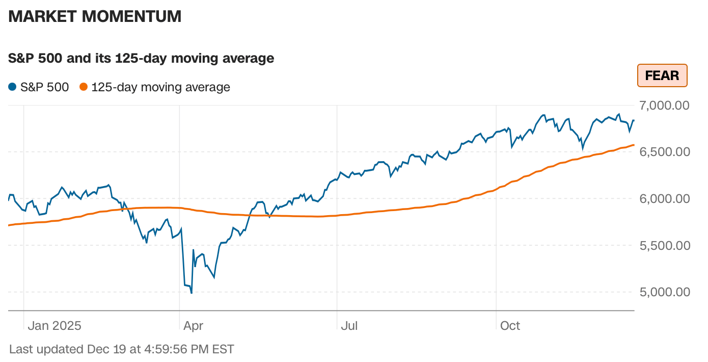 SP500 decently above 125DMA (even though it says fear in the top right, this is actually greedy IMO. Another thing I disagree with and why the overall number of 45 is artificially skewed lower)