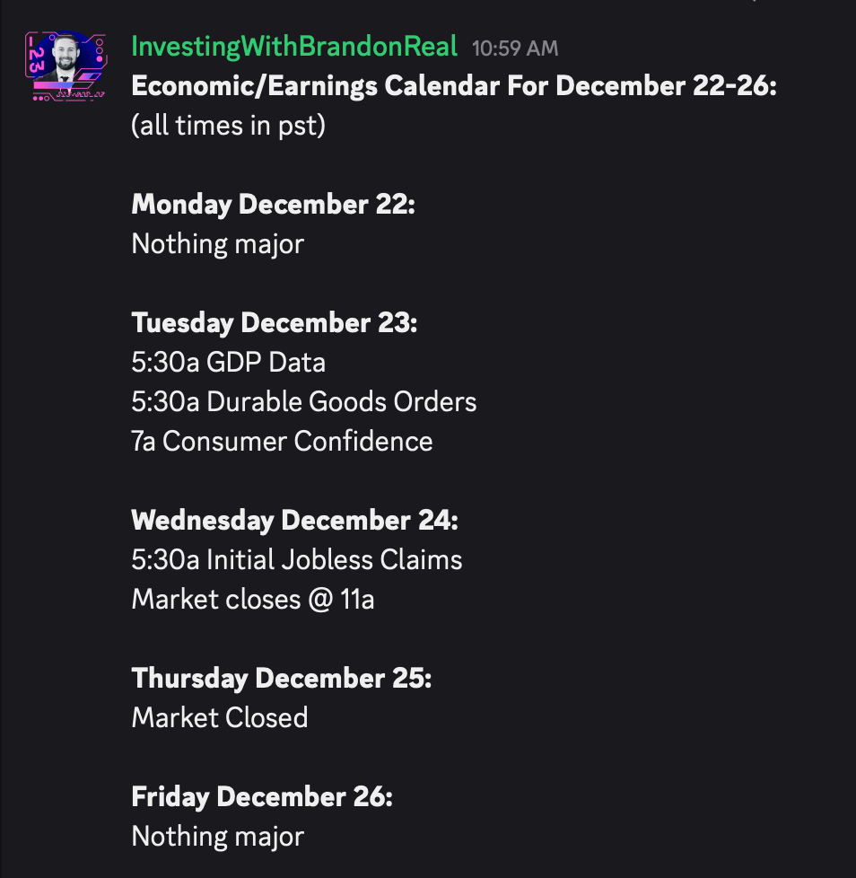The bigger picture overall for the next 2 weeks is that we are now entering a quieter stretch before Q4 earnings begin & more economic data drops after the holiday season.