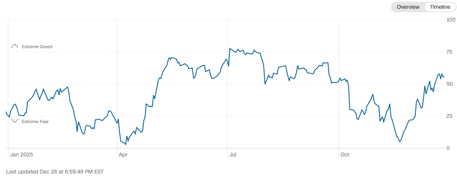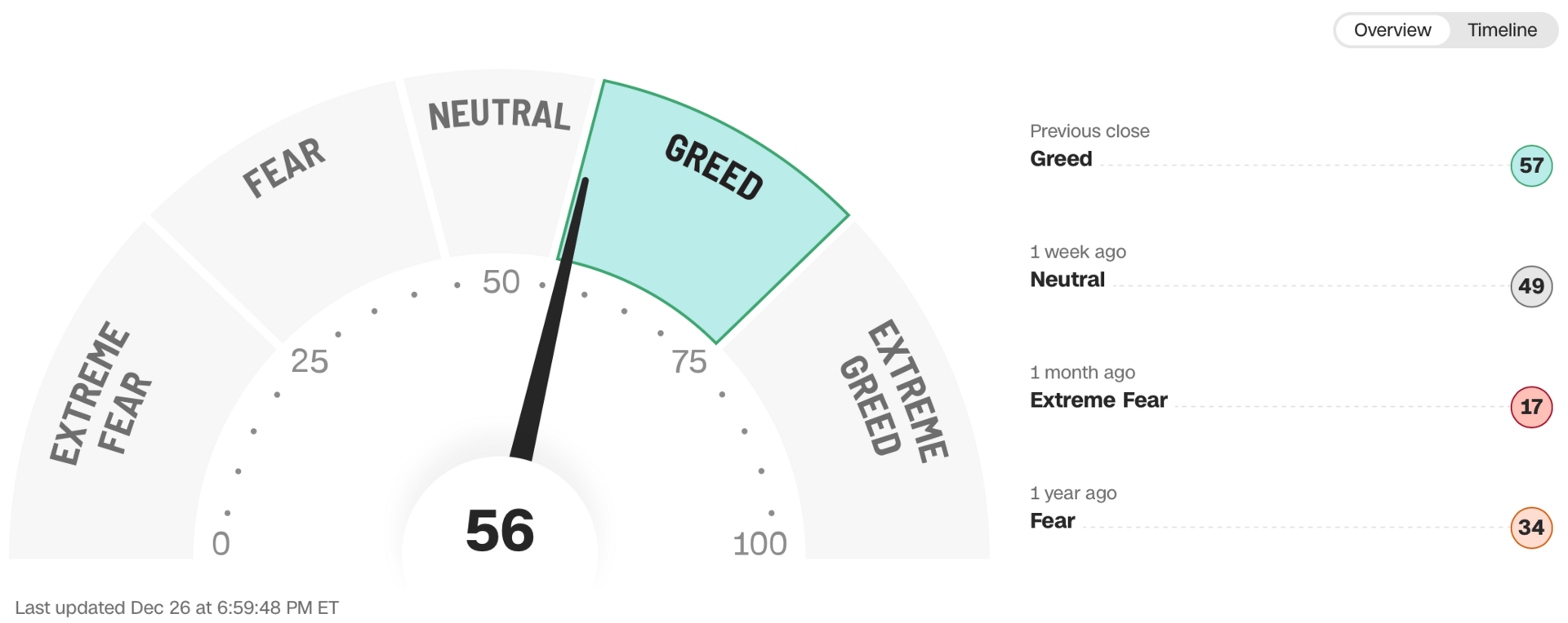 Current Fear/Greed Index (I disagree with this number, I put it at 65, not 45)