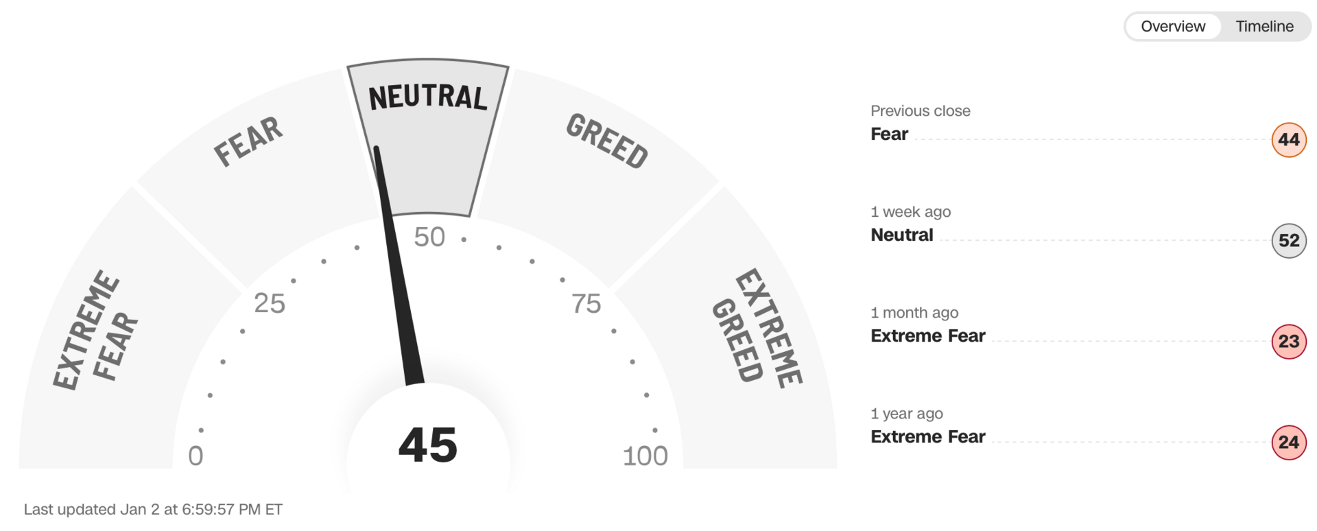 Current Fear/Greed Index (I disagree with this number, I put it at 65, not 45)