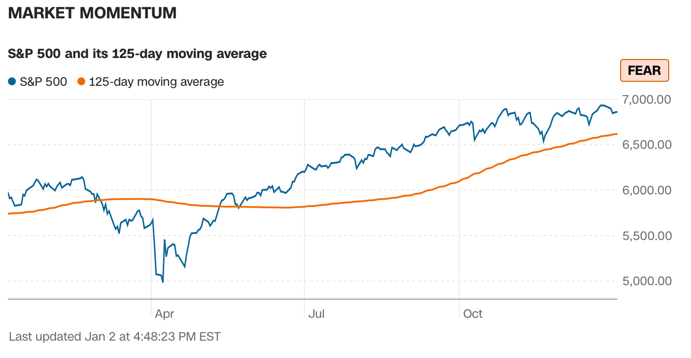 SP500 decently above 125DMA which does indicate greed (not fear as it says)