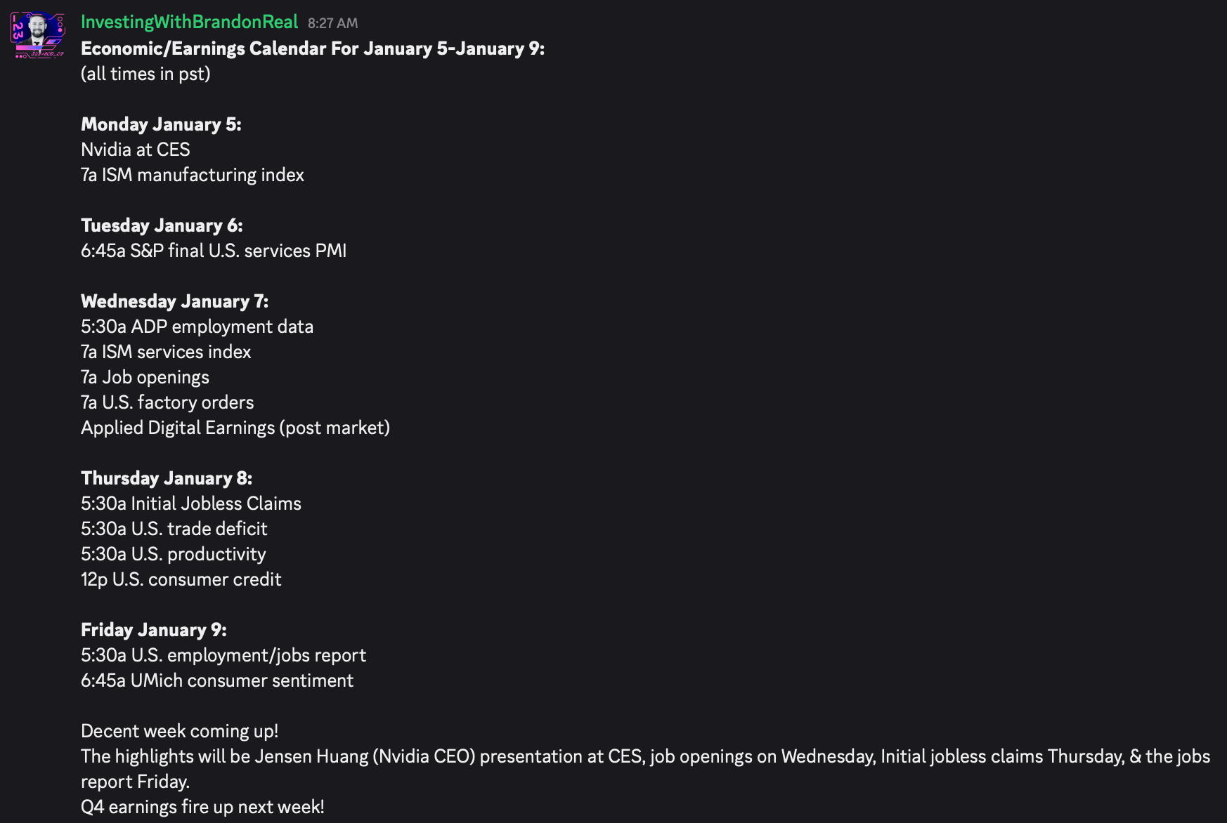 Right now, the key drivers to watch are a gradually weakening labor market and stretched valuations. However, Q4 earnings begin next week. If earnings come in strong, the rally likely continues. I do expect Q4 earnings to be solid, but we will let the data guide us.