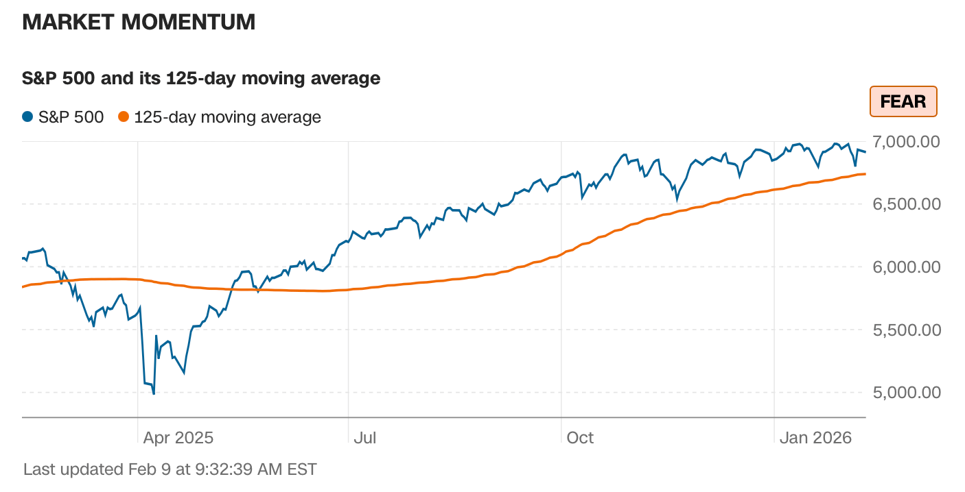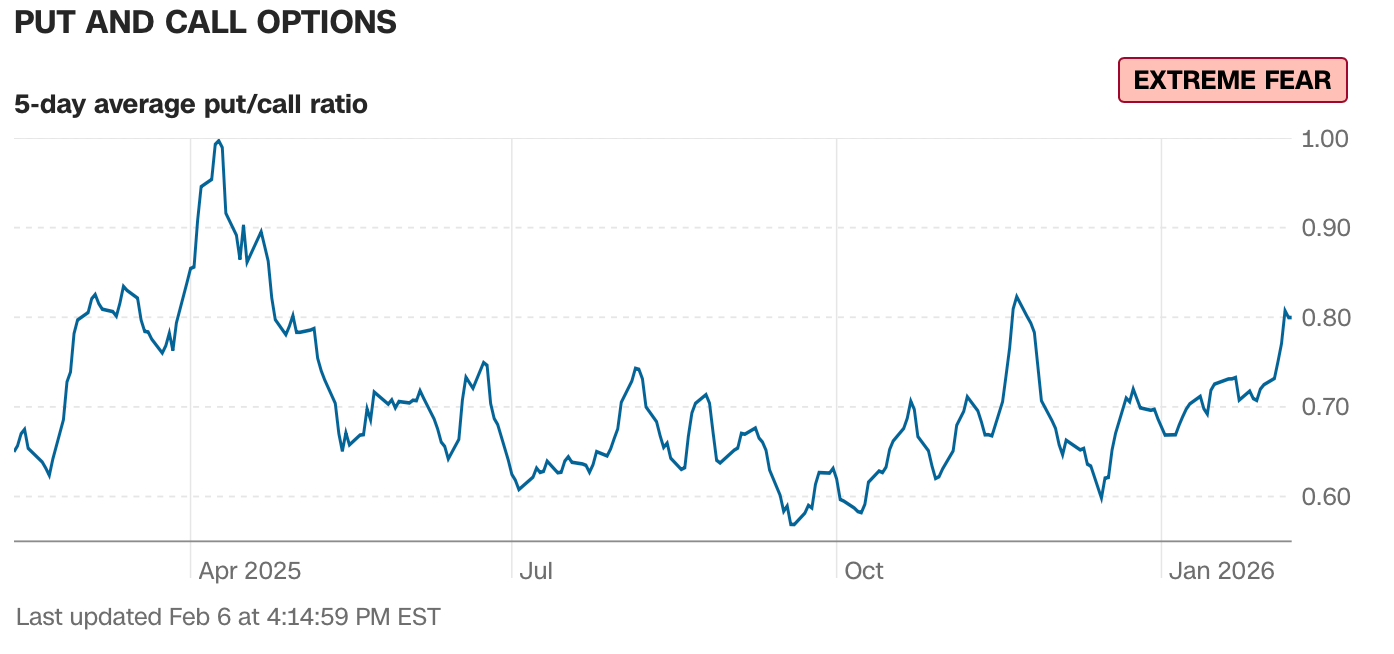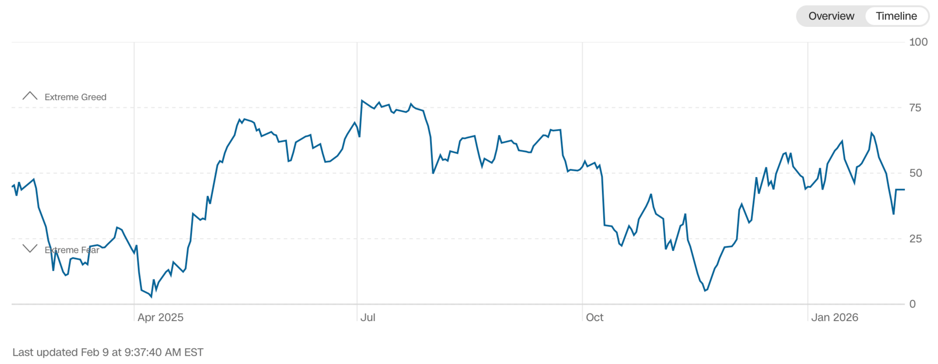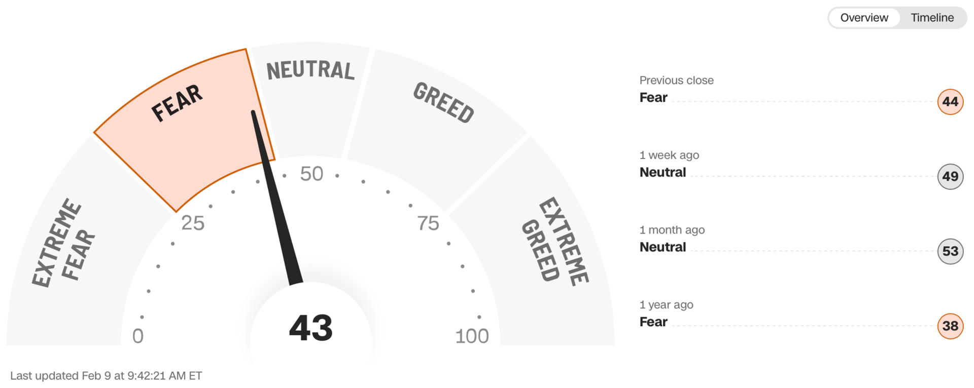 Current read is 43 on the fear greed index vs 58 last week.