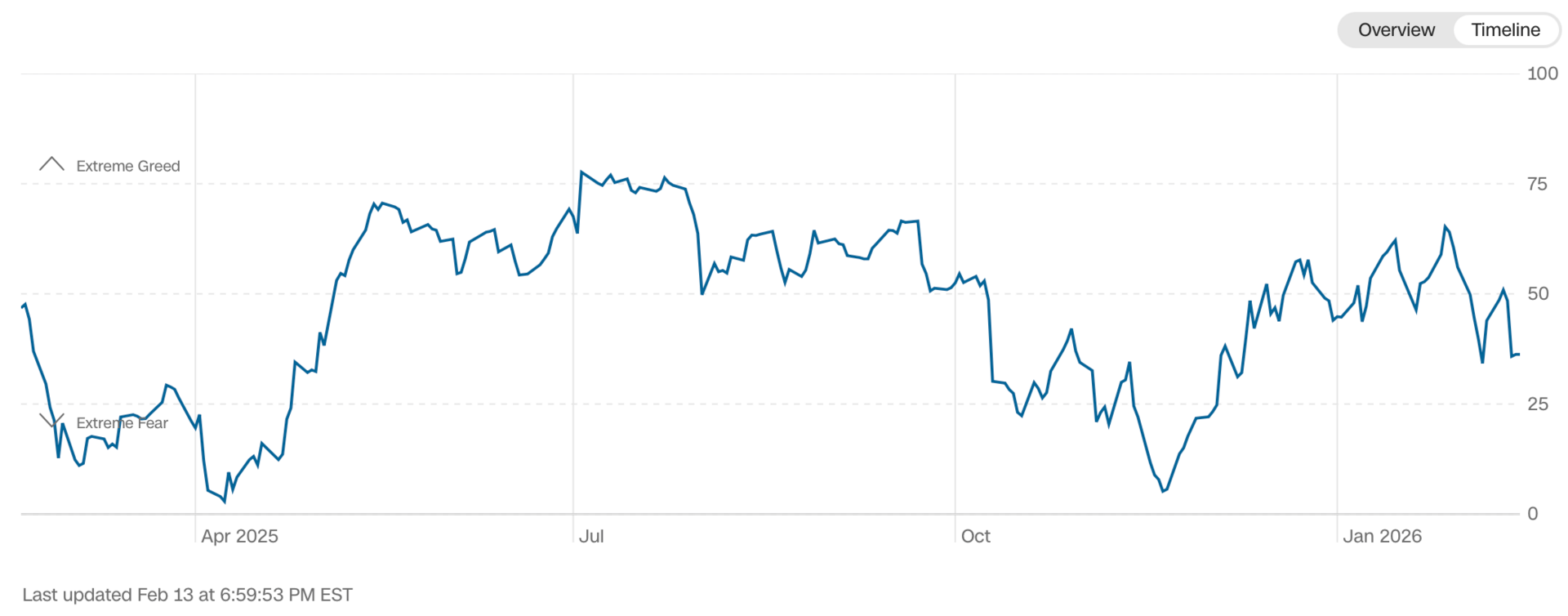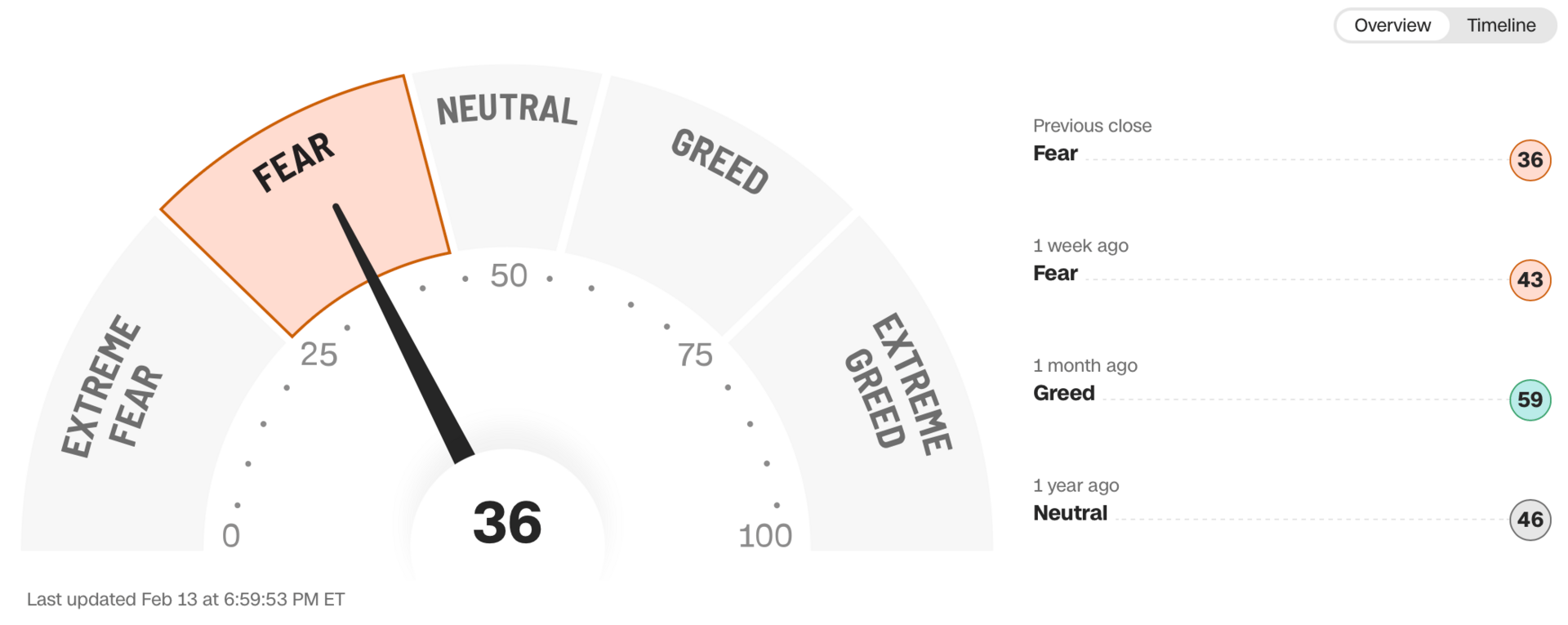 Current read is 36 on the fear greed index vs 43 last week.