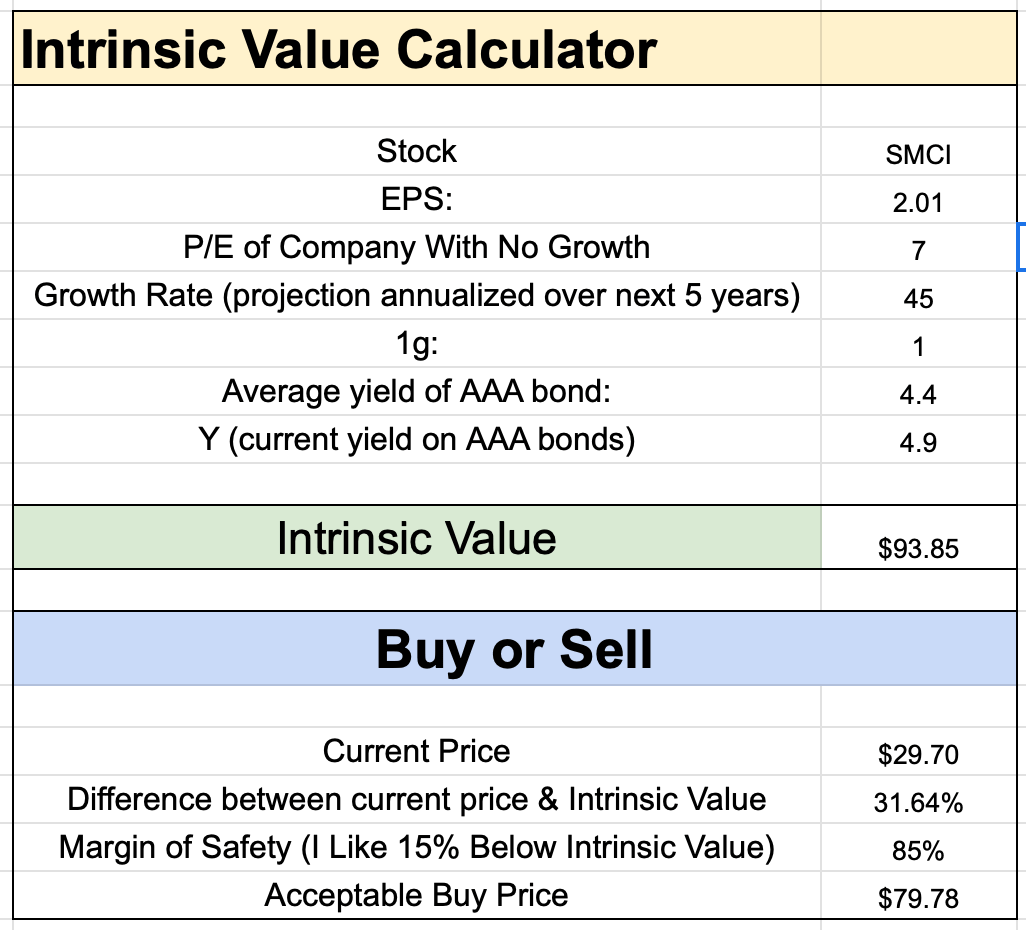 Based on my intrinsic value calculator, the value of SMCI is actually $93.85