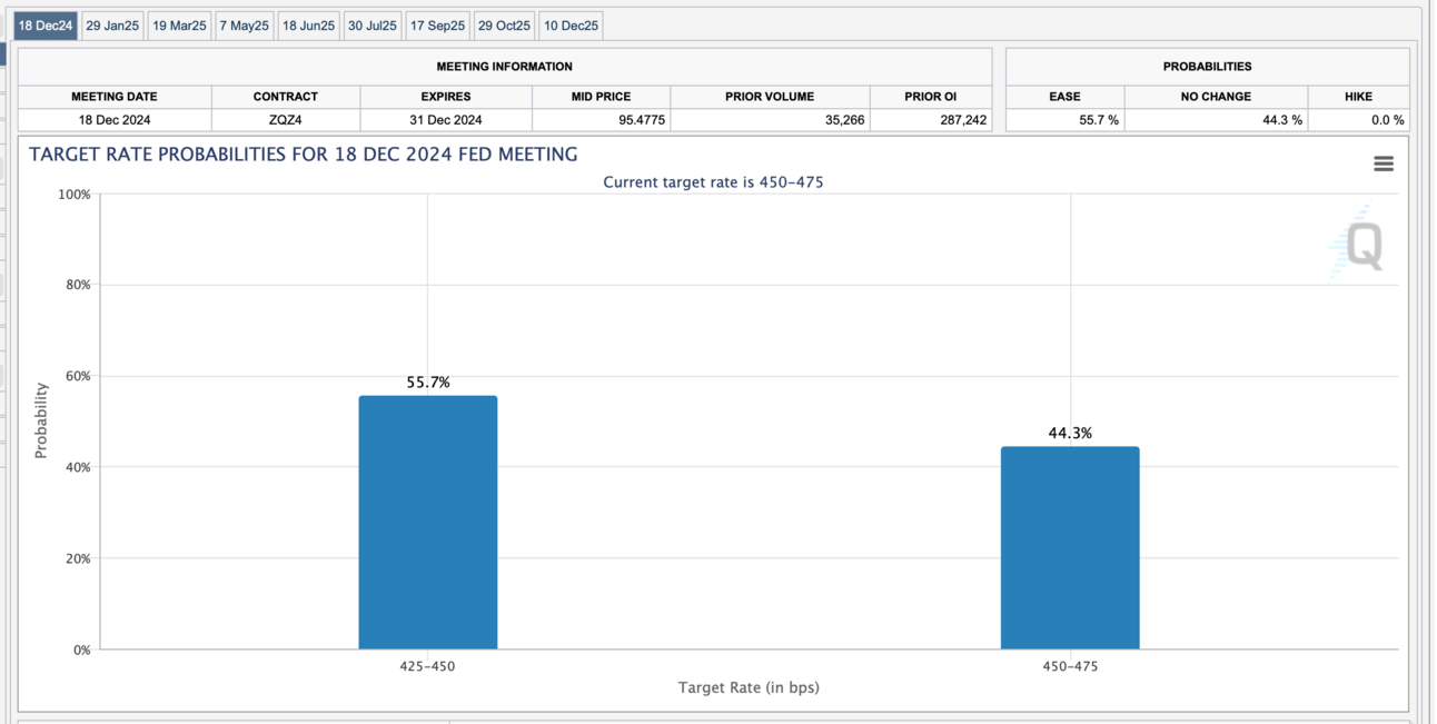 We are now at a 55% chance we get a rate cut at the December meeting.