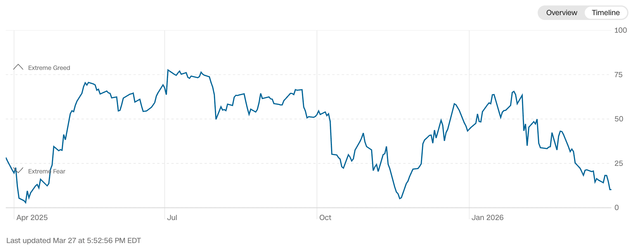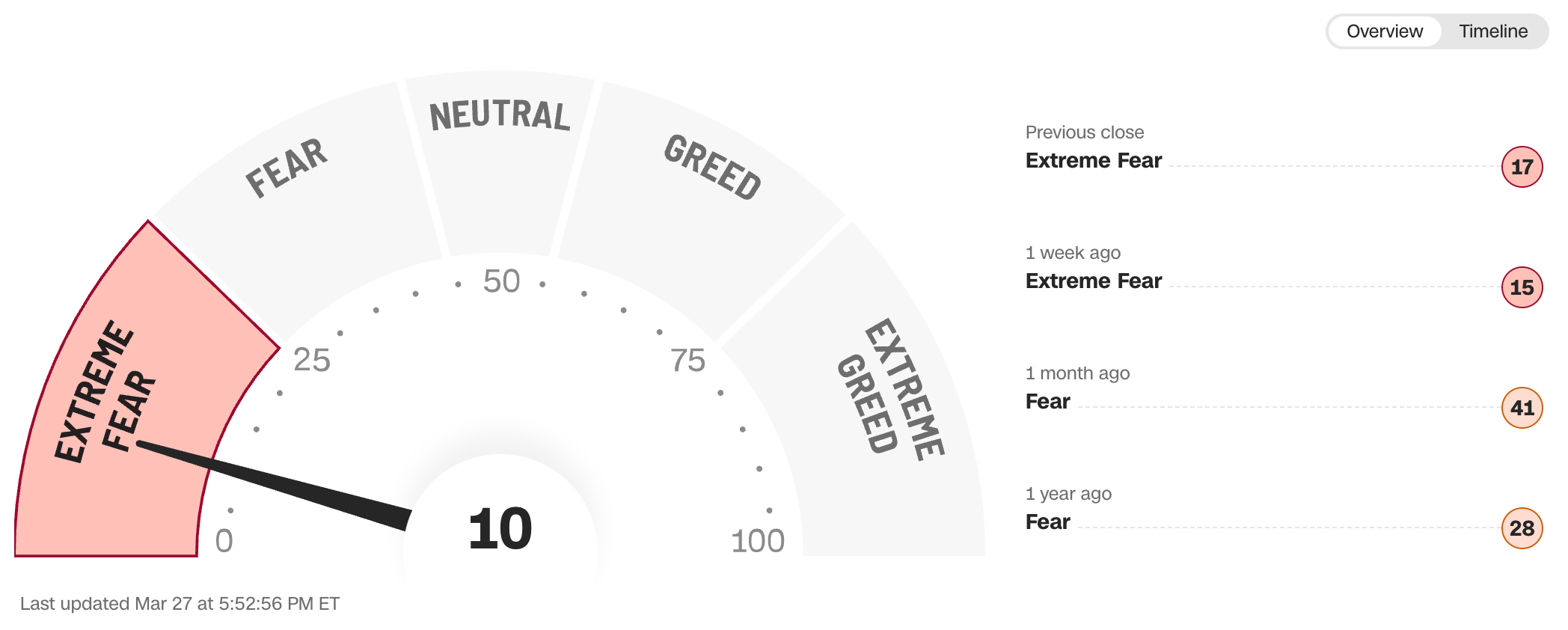 Current read is 10 on the fear greed index vs 15 last week.