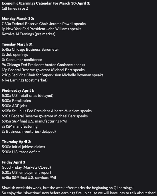 As for this upcoming week, it will all be about Iran & the jobs report. Q1 earnings will be firing up in about 2 weeks and we will have LOTS to cover in Discord & capitalize on.