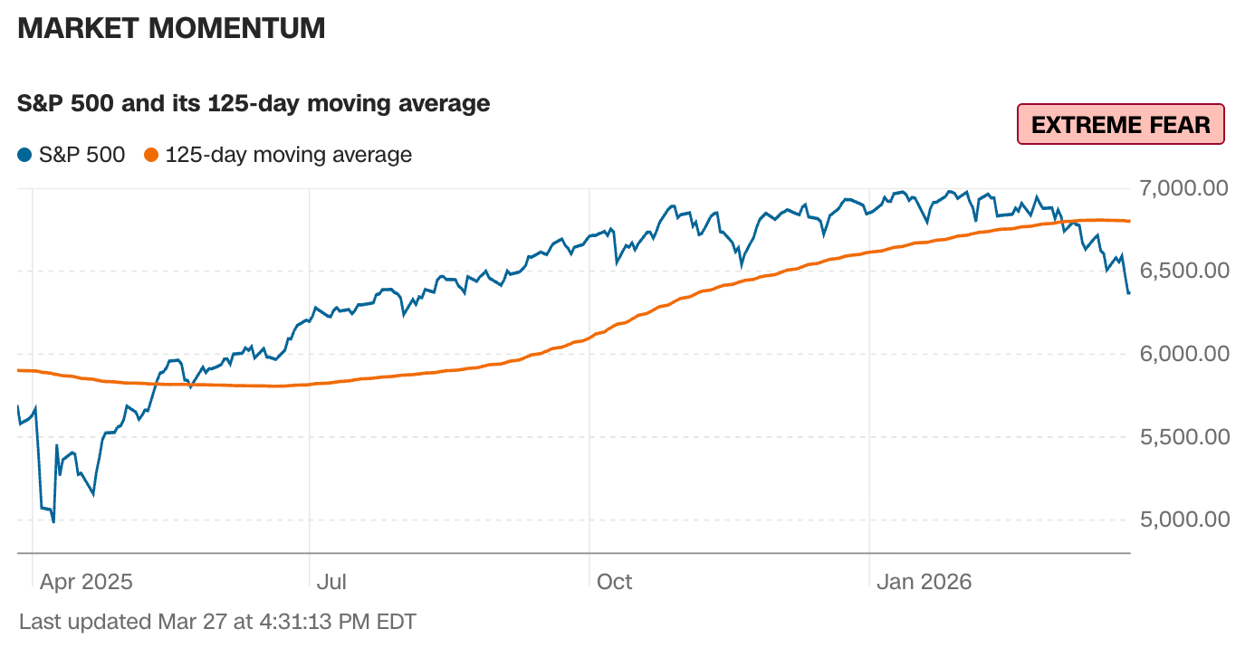 SP500 is below 125DMA which indicates “some fear” but not extreme fear IMO. Usually in good buy the dip land when it’s below 125DMA.