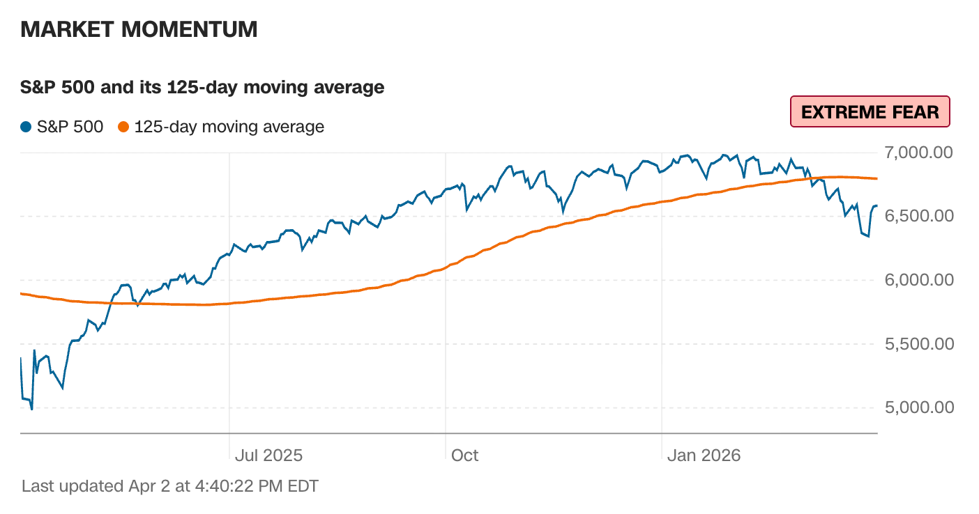 SP500 is below 125DMA which indicates “some fear” but not extreme fear IMO. Usually in good buy the dip land when it’s below 125DMA.