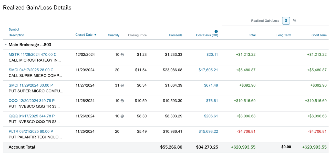 Solid week last week. +$20,993 realized capital gains. (I will update this every Friday)