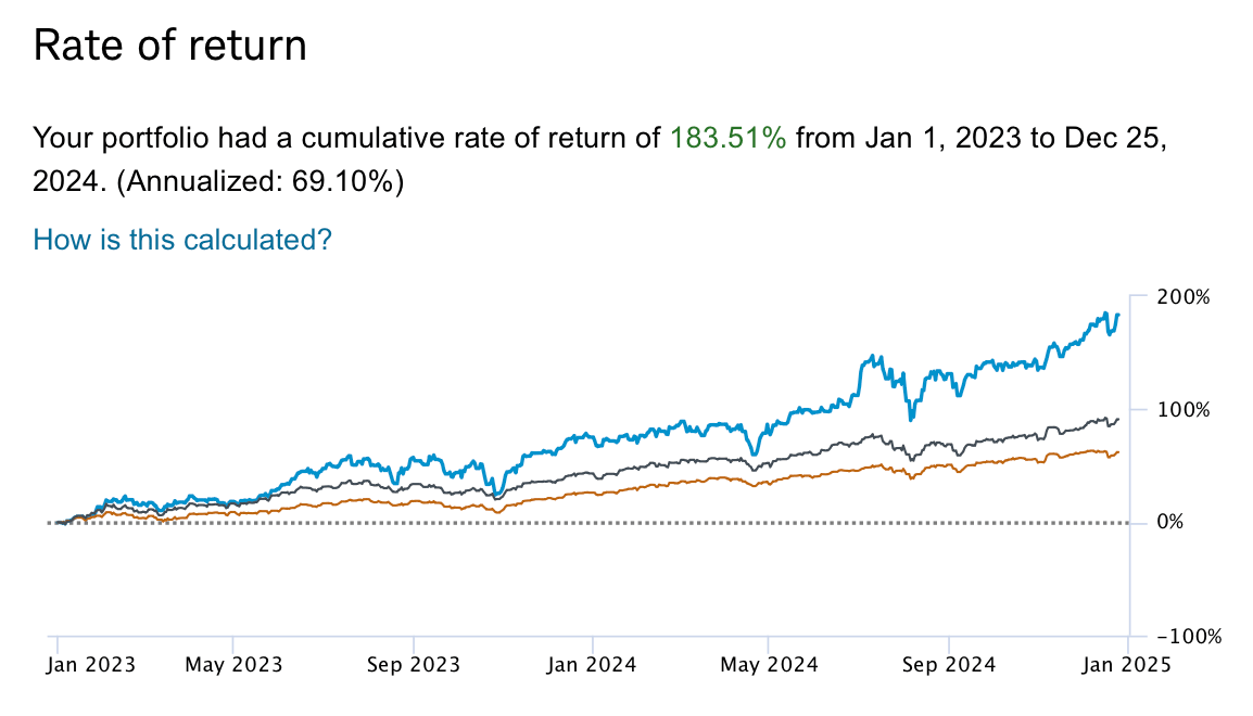 Me = Blue, Black = Nasdaq, Orange = SP500.