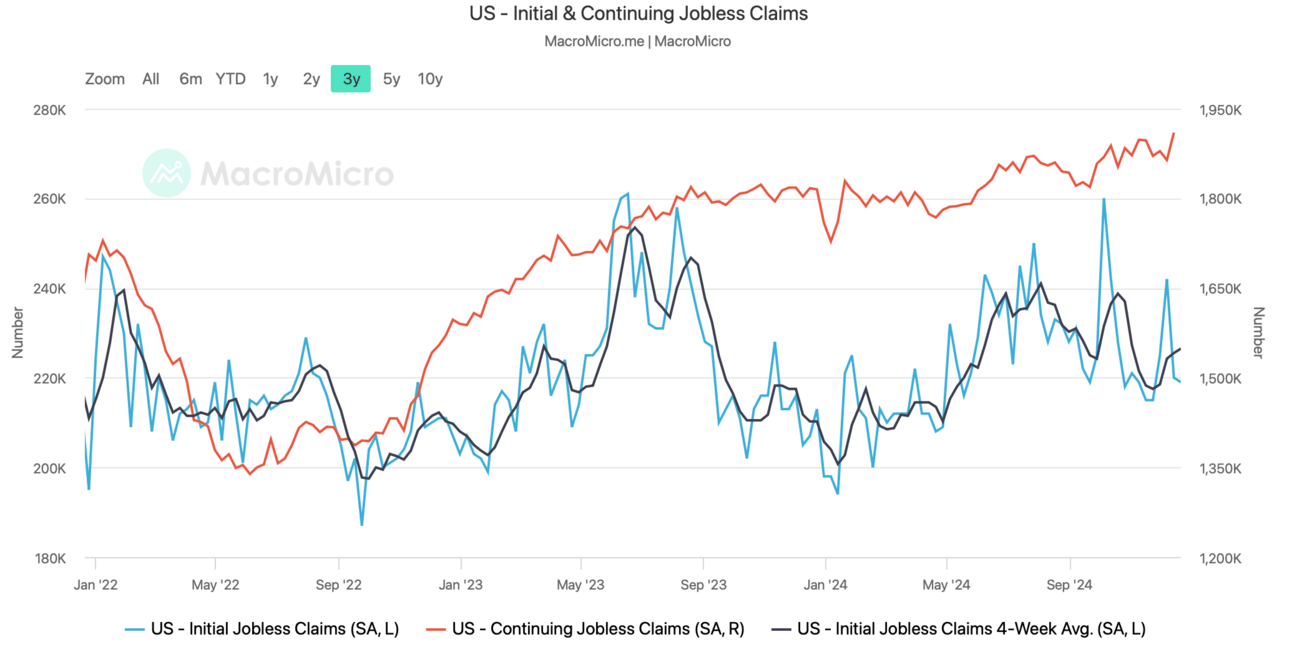 Today, Initial jobless claims came in at 219k vs 220k expected.