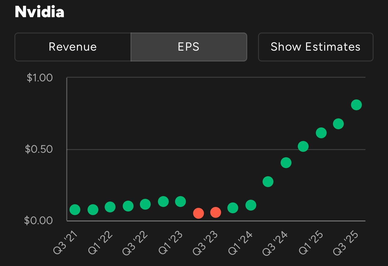 Nvidia has proved to be one of the key companies to benefit from the AI wave. This chart shows the crazy earnings growth.