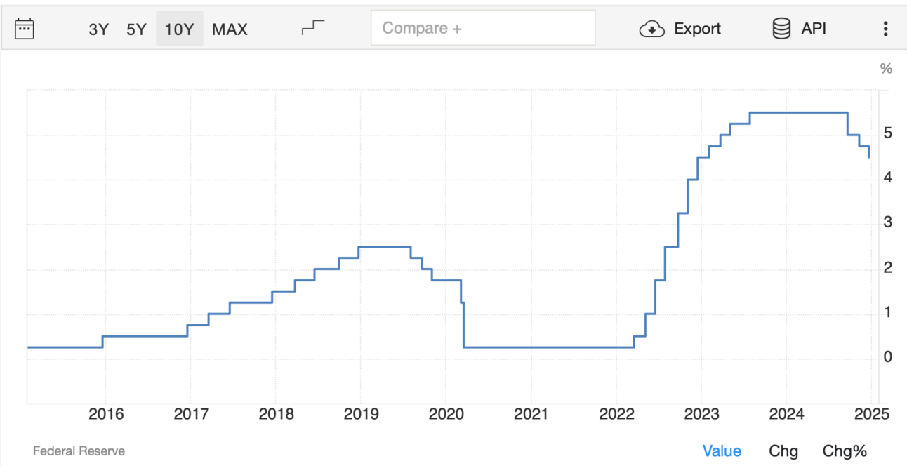 This is the last two cycles or rate hikes and cuts. This cycle went from 5.5% to 4.5% so far