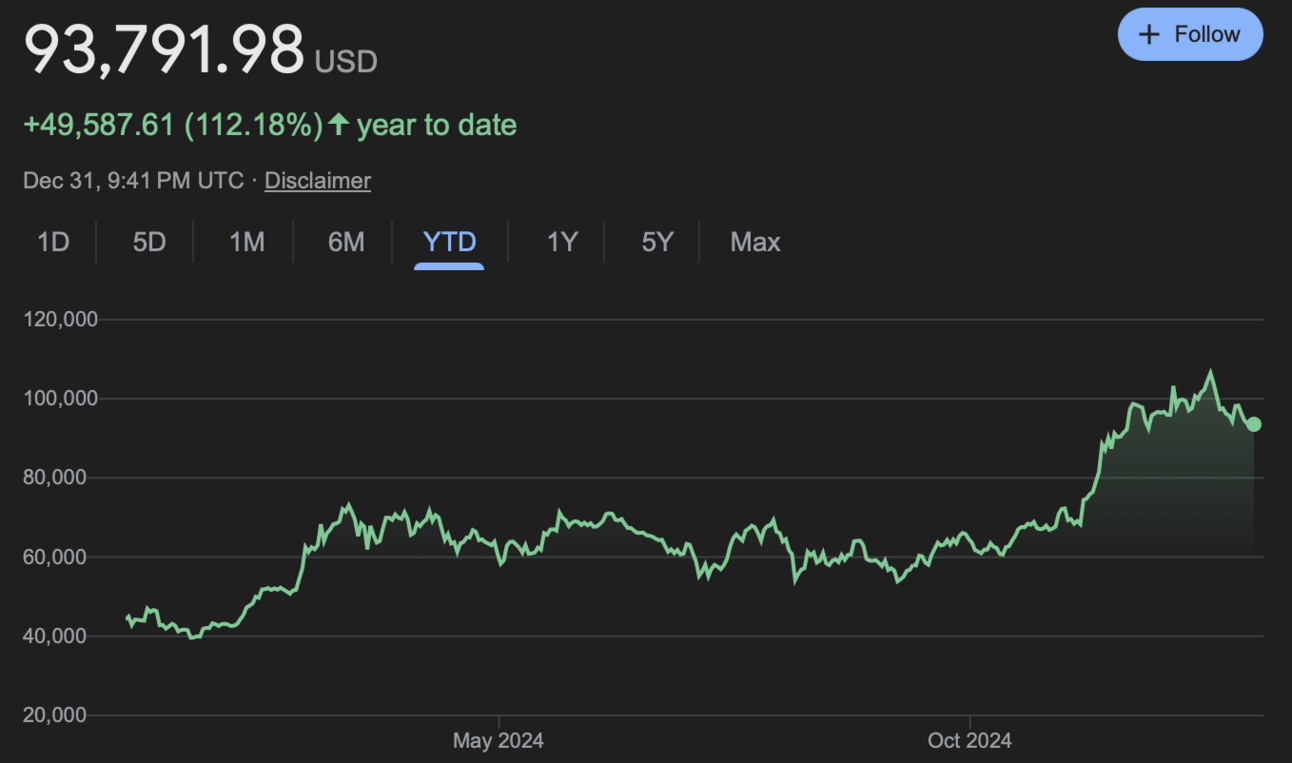 YTD chart of BTC. Notice the pump once the election results were decided in November.