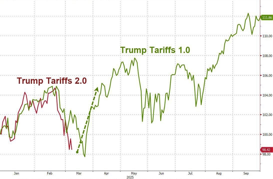 Check out this chart from Trumps first presidency vs his current and how the stock market performed…