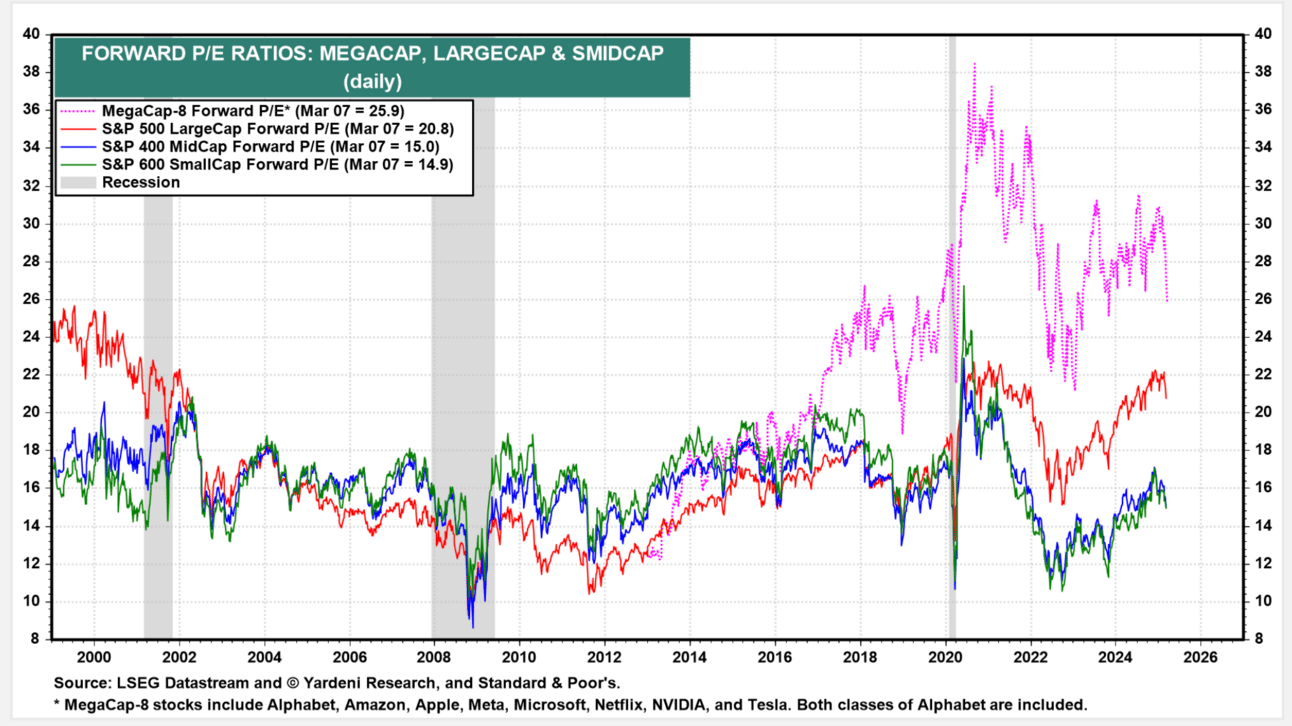 Check out the forward PE ratio chart below of the Mag 8 stocks (pink) & the SP500 (red).