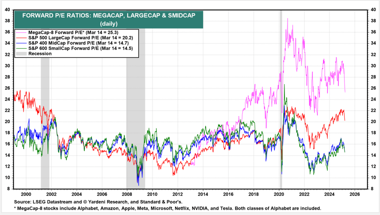 Check out the forward PE ratio chart below of the Mag 8 stocks (pink) & the SP500 (red).