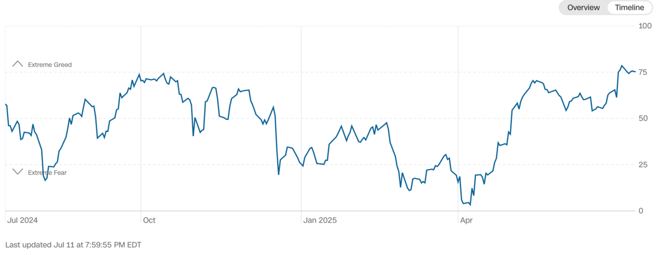 So the market is now in the extreme greed category after a massive bounce off of the April lows.