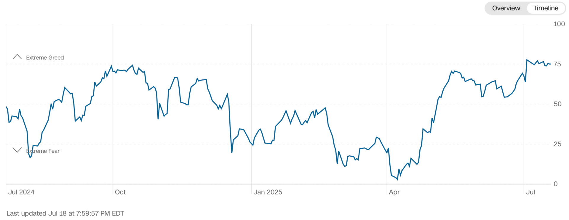 So the market is now in the extreme greed category after a massive bounce off of the April lows.