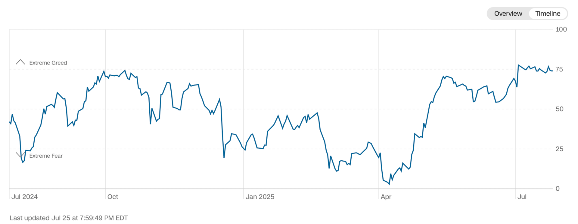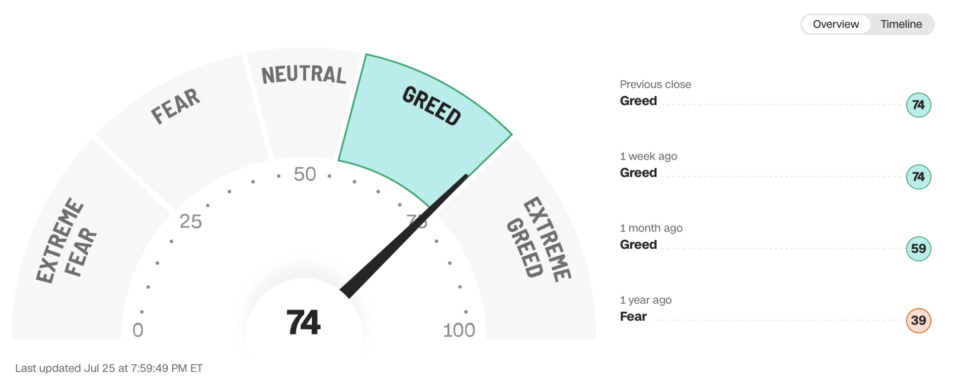 Market Greedy = Potential Over Valuation. (buy puts/sell calls/sell shares)