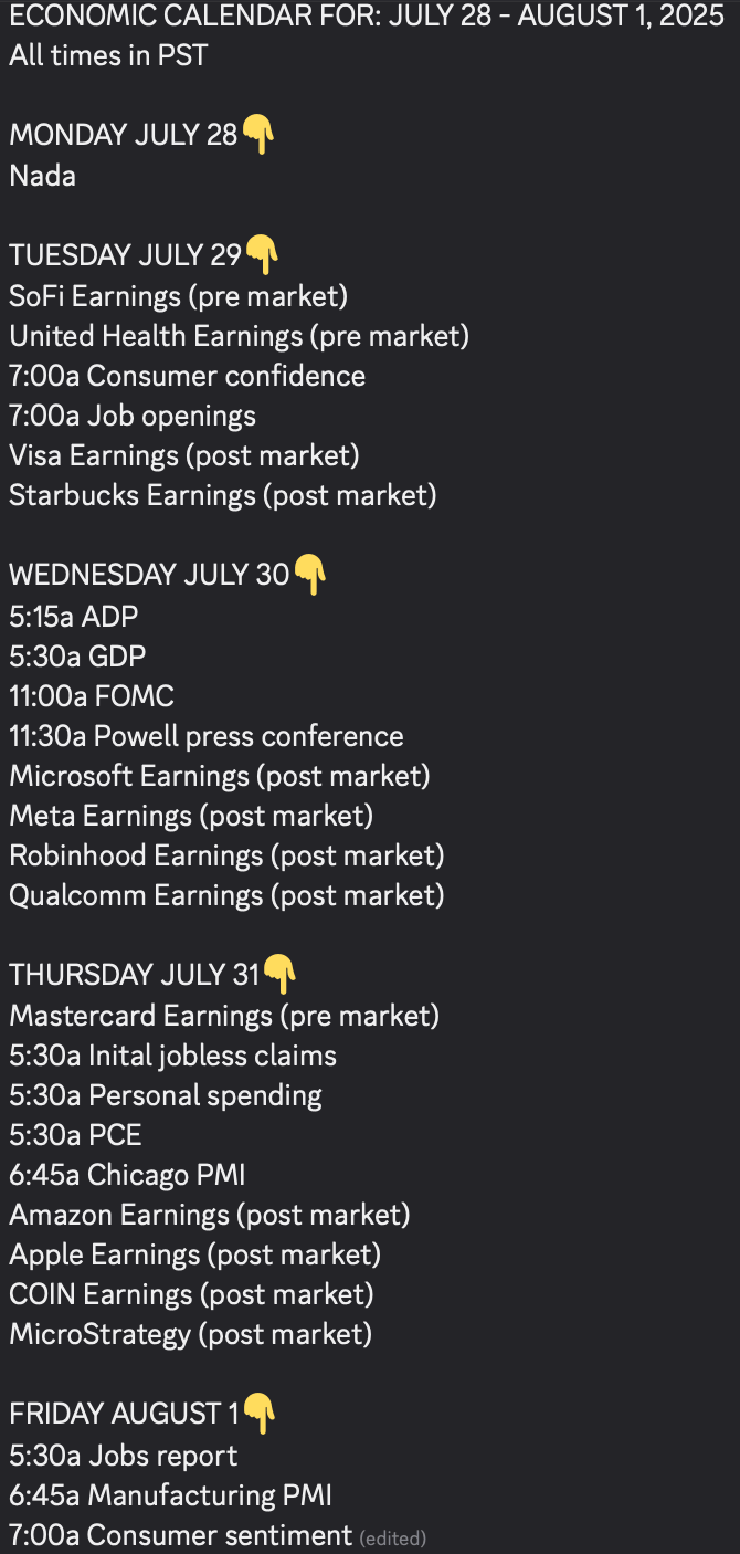 So this week we have earnings from lots of big dogs such as Microsoft, Meta, Amazon, Apple, Robinhood, and Visa.