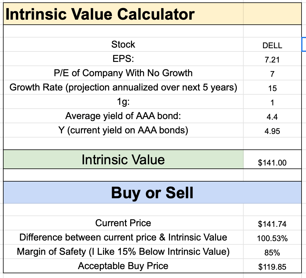 Assuming a 15% annual growth rate, dell is near intrinsic value.